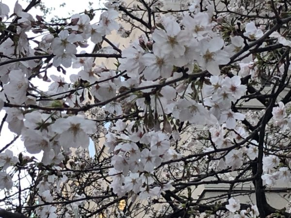 写真は日本橋のさくら通りの桜です。満開でしたが、雨で散り始めています。はかなくて風情がありますね。