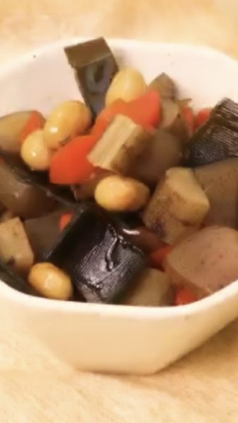 写真は大豆の五目煮です。豆は食物繊維たっぷりでからだに優しいです。
