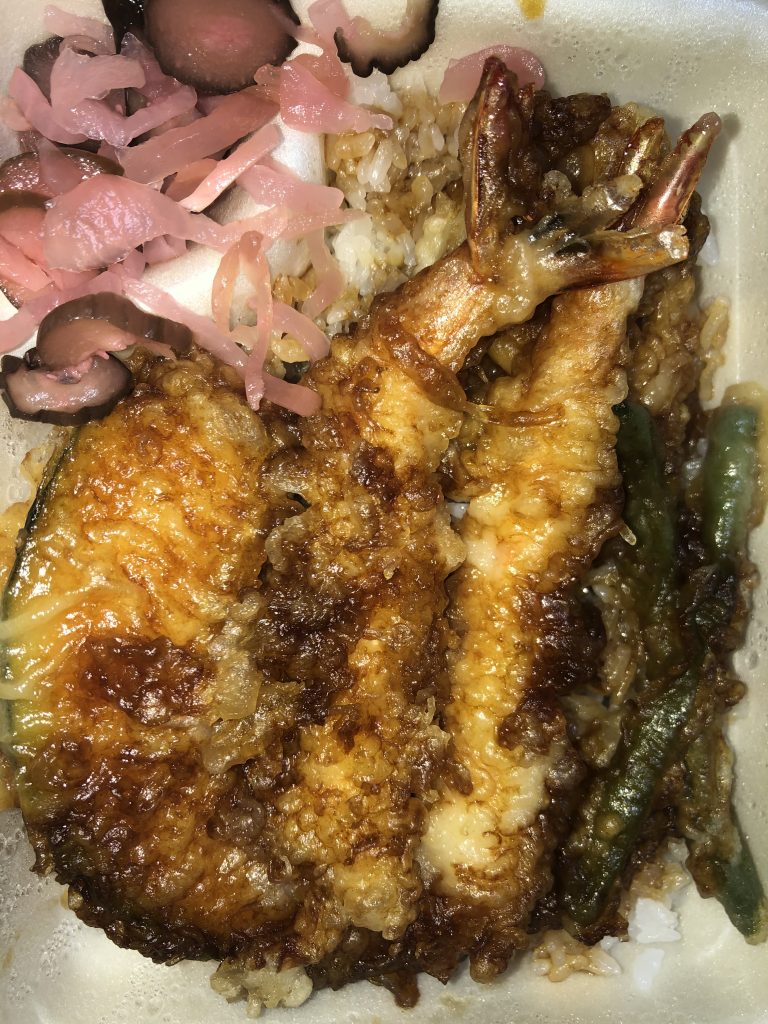 写真はてんやさんの天丼です。久しぶりに食べましたが、天ぷらが美味しかったです。