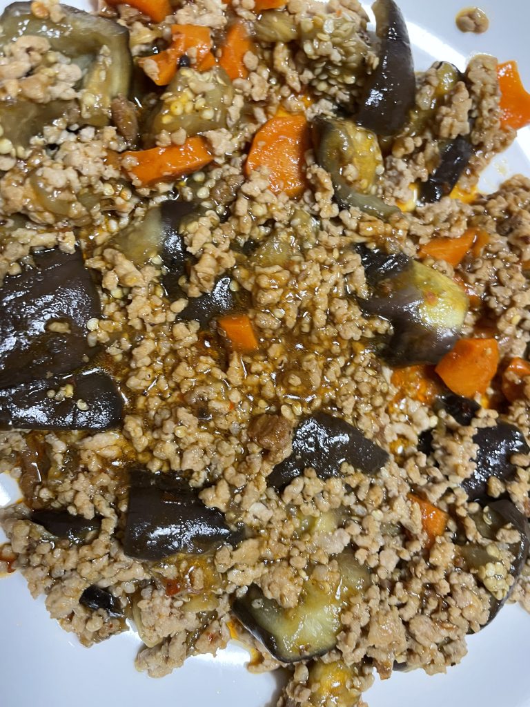 写真は麻婆茄子です。美味さにハマって毎週作っています。