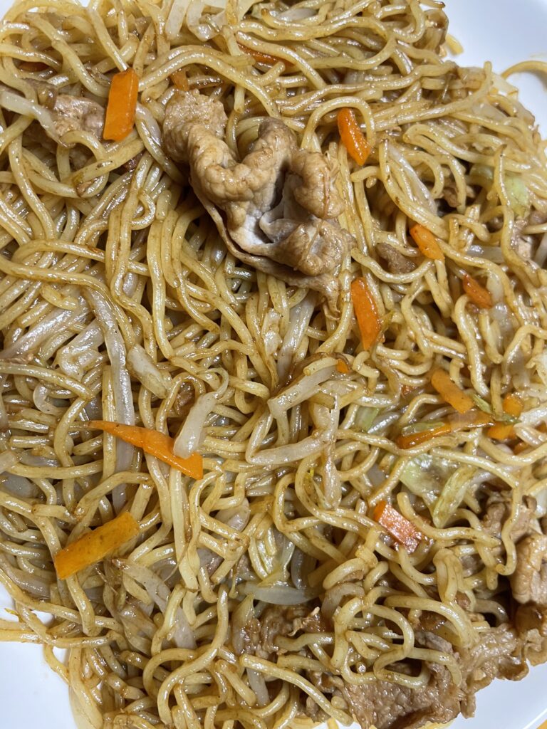 写真はソース焼きそばです。豚肉との相性抜群です。